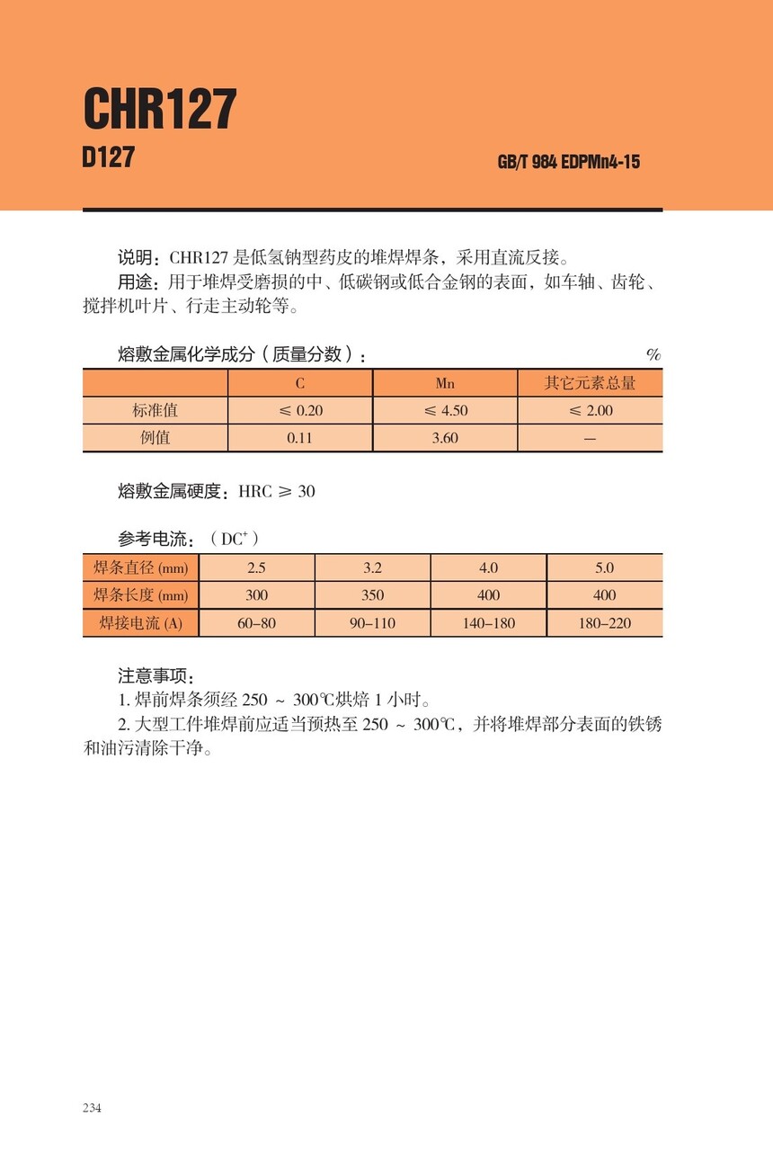 D127锰型堆焊焊条 D132铬钼型堆焊焊