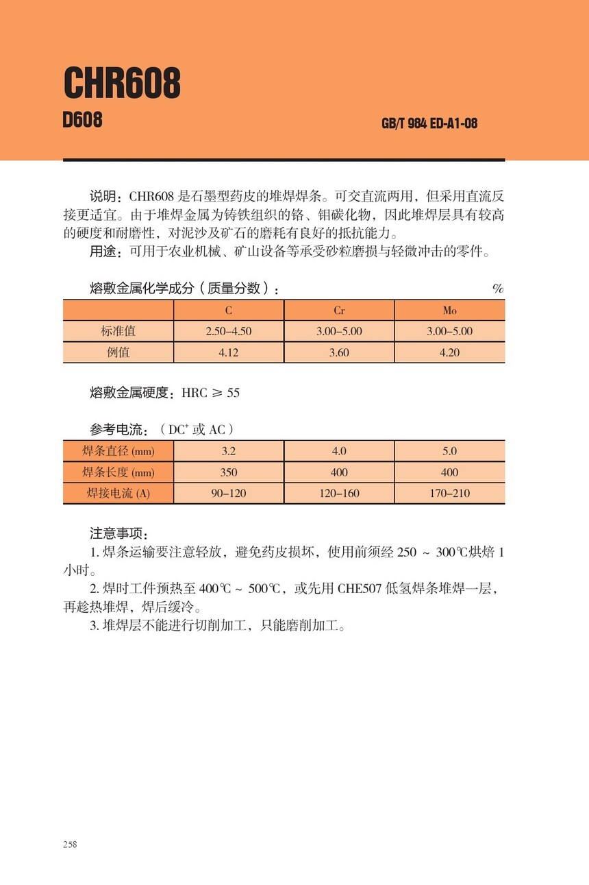 CHR608耐磨焊条D608堆焊焊条