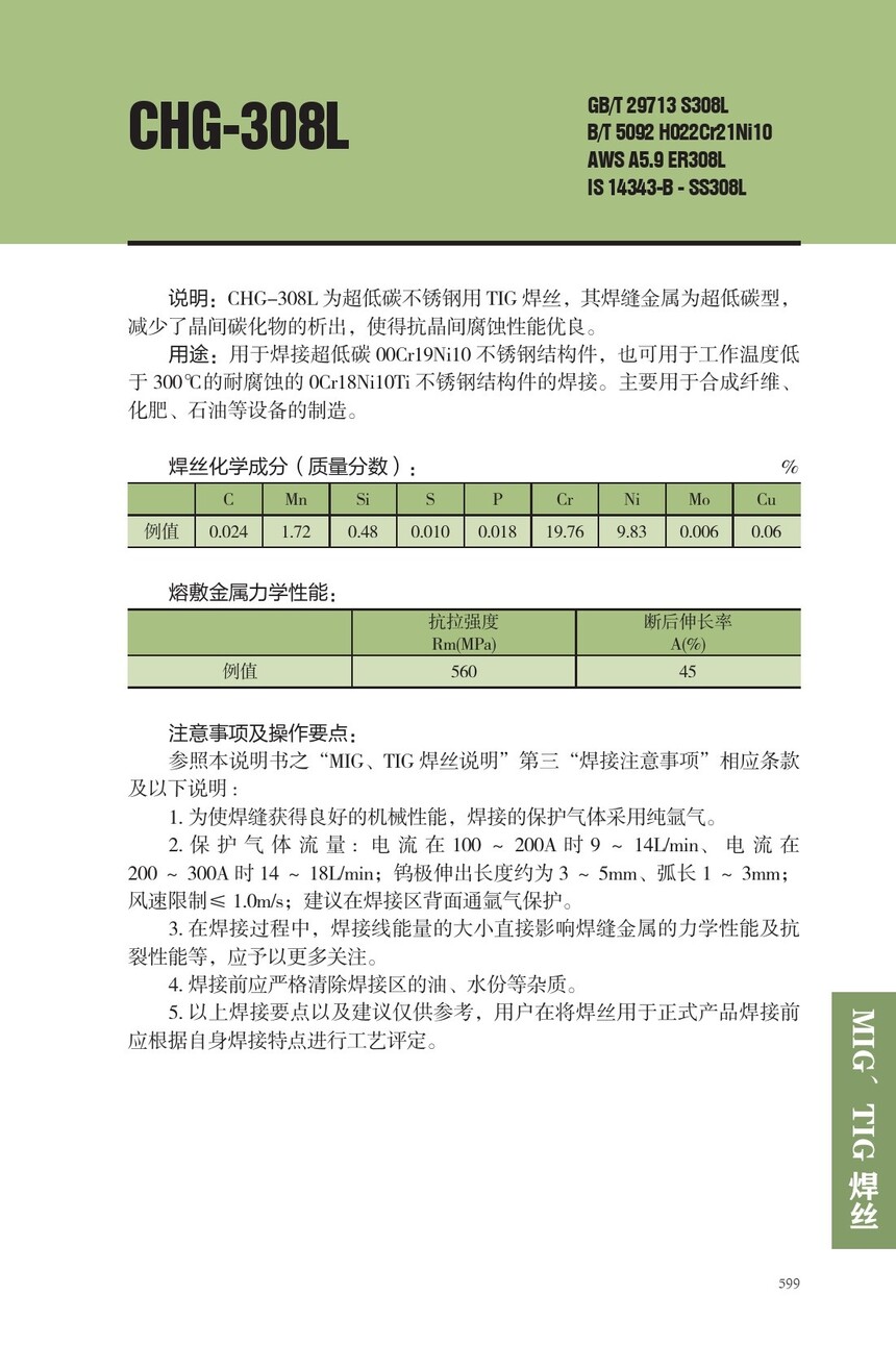 CHM-308LG不锈钢焊丝ER308LSi焊丝